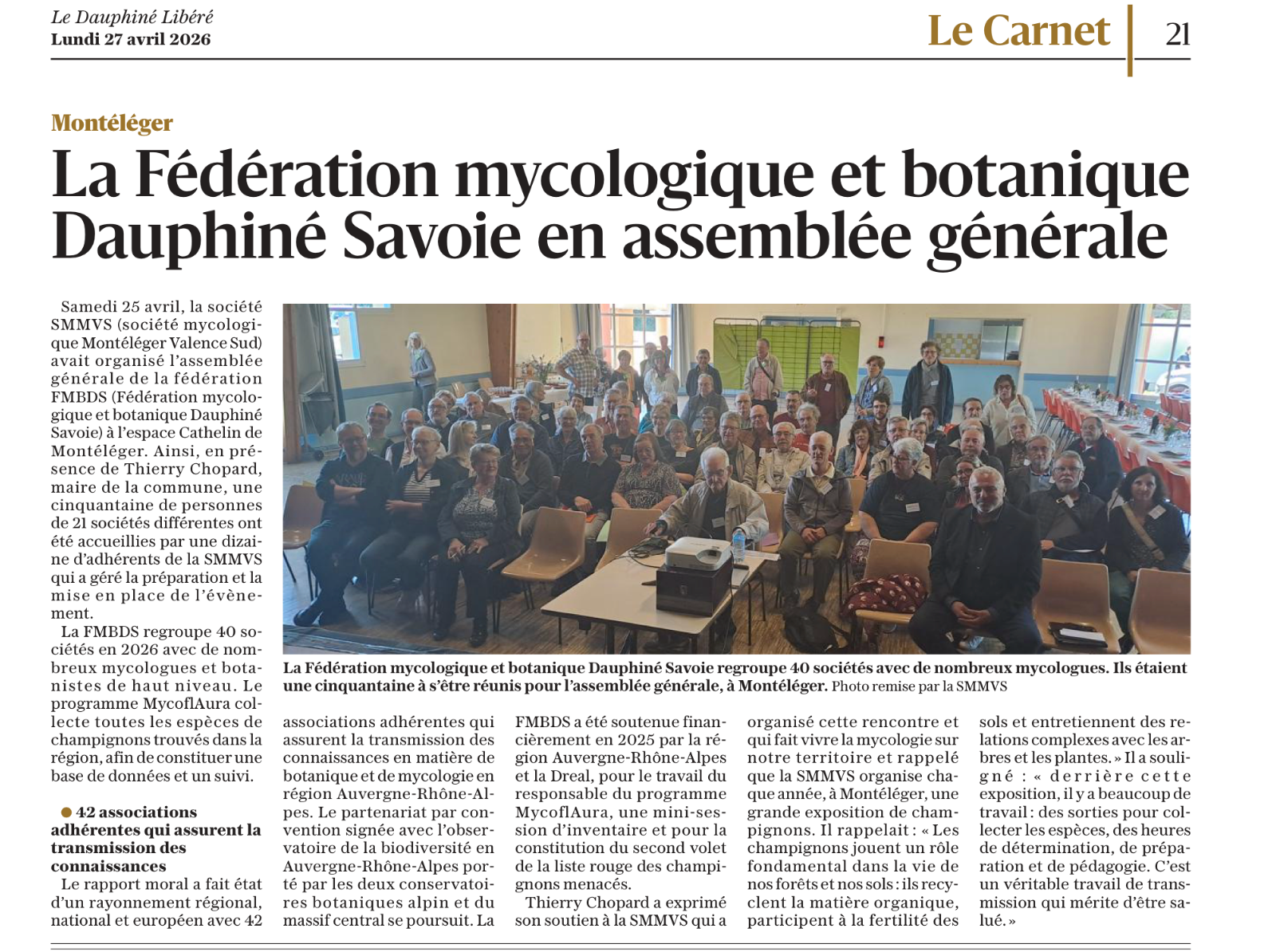 A noter la présence de M. Thierry Chopard, maire de Montéléger et lui-même adhérent de la SMMVS, qui nous a aimablement mis gratuitement à disposition la salle de réunion et a fait rédiger un article sur l’AG dans la presse locale.